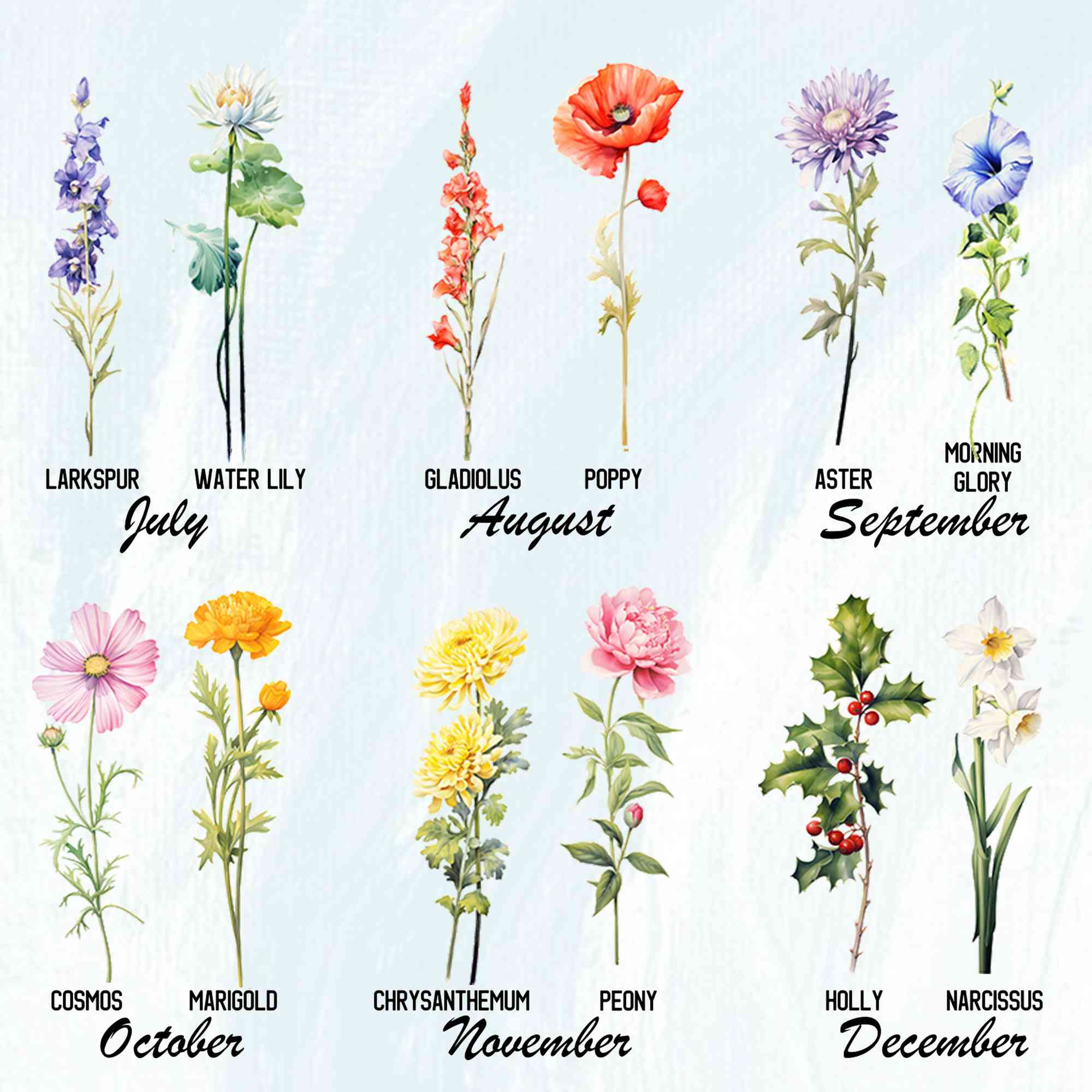Regalo para mujer : Una opción ideal para cumpleaños, bodas, regalos para la despedida de soltera, regalos para la propuesta de matrimonio, aniversarios o una sorpresa especial para tus mejores amigas y las mujeres que más quieres. Cada pieza celebra su flor de nacimiento y su nombre con mucho cariño.