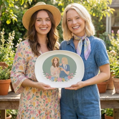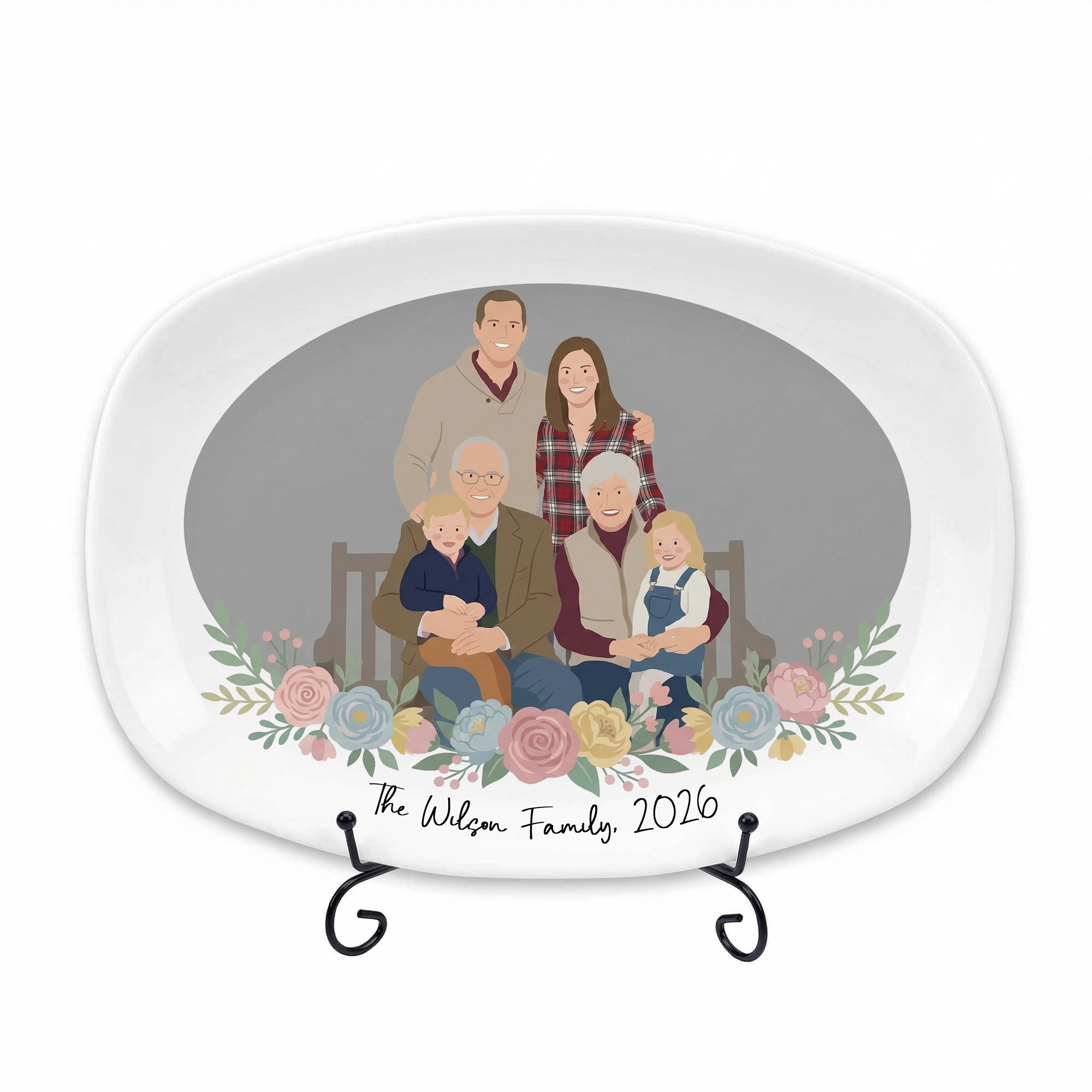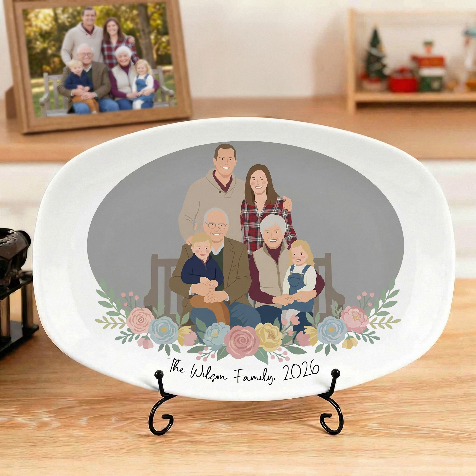 | Estilo | Plato decorativo personalizado con retrato familiar en acuarela |