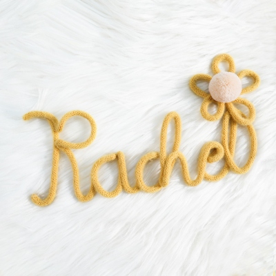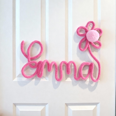 Diseño de nombre caprichoso : el cartel de nombre tejido con alambre presenta curvas suaves y un dulce detalle de flor de pompón, lo que crea un aspecto divertido y acogedor que se adapta maravillosamente a una guardería, dormitorio o sala de juegos para una niña o un niño.