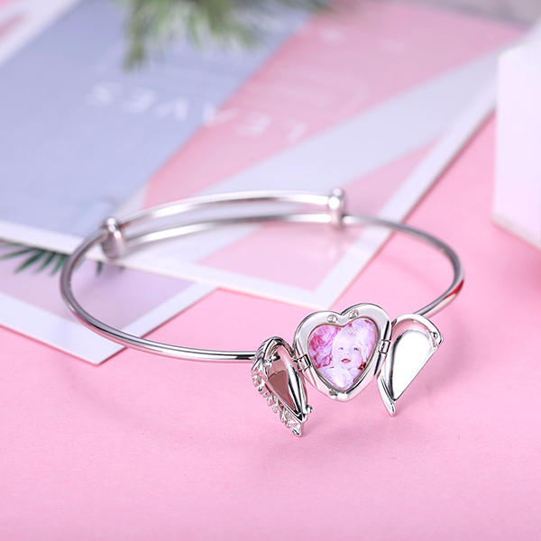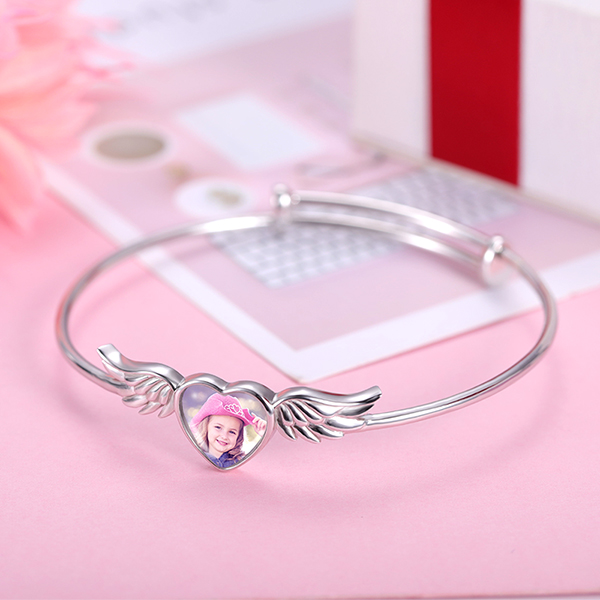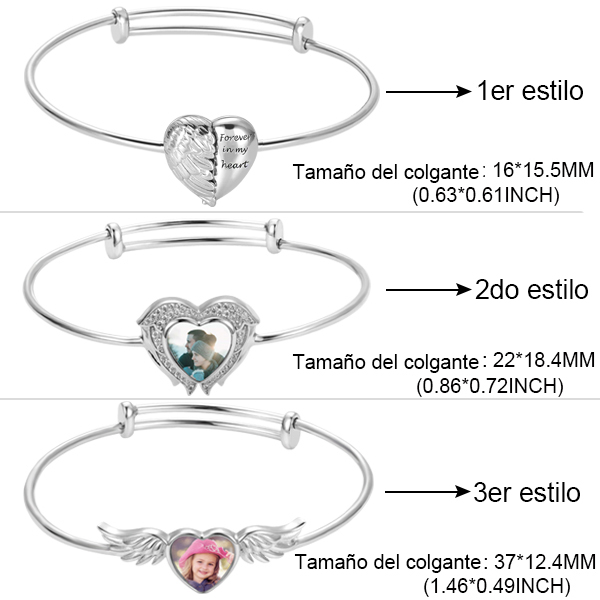 Pulsera personalizada de color plata de estilo corazón con foto