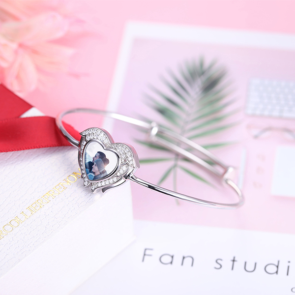 Esta pulsera de moda se hace de plata 925, brillante y elegante, es una excelente opción para su vida cotidiana. Si está buscando un regalo para expresar amor, esta pulsera personalizada será su mejor opción. Sube sus fotos preciosas y proporciónale a él o ella una respuesta sobre el amor.
