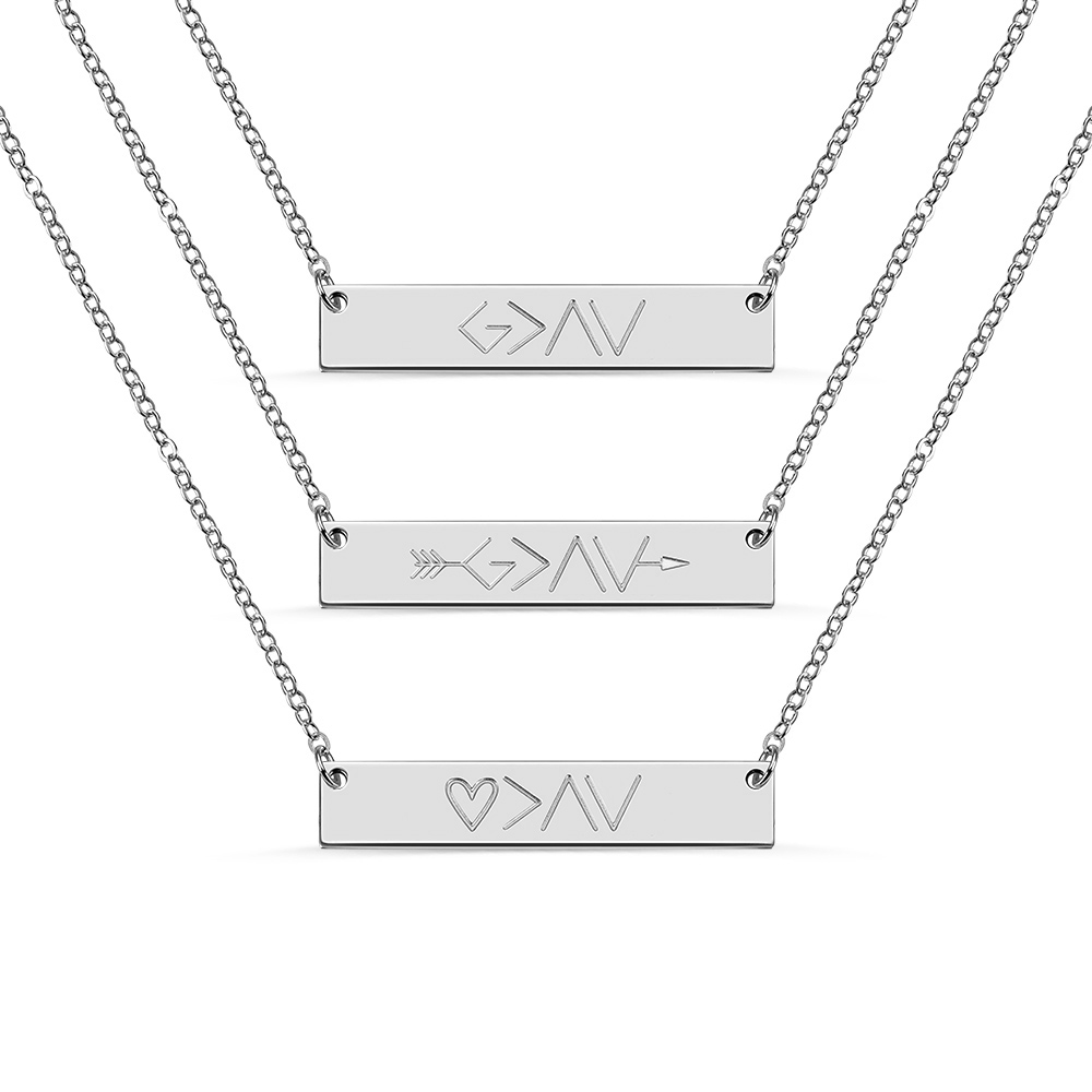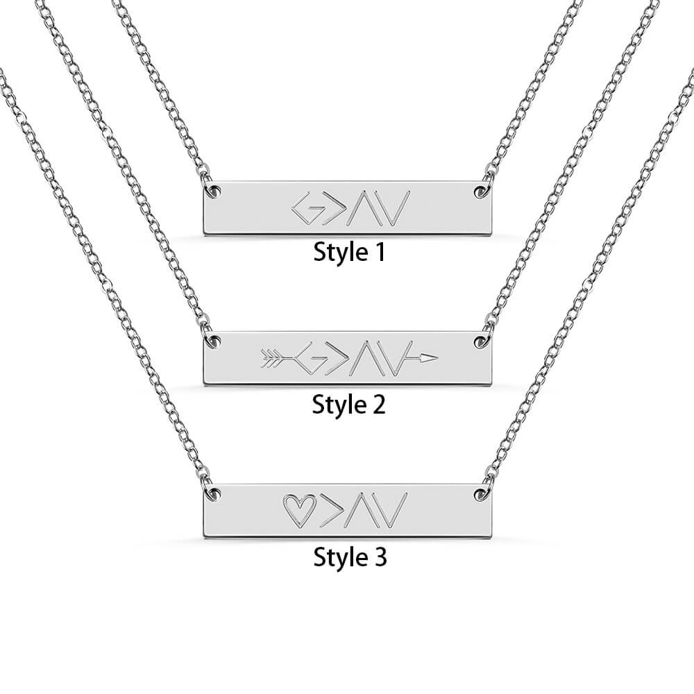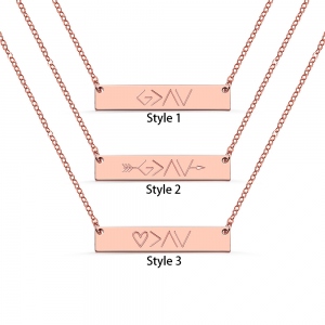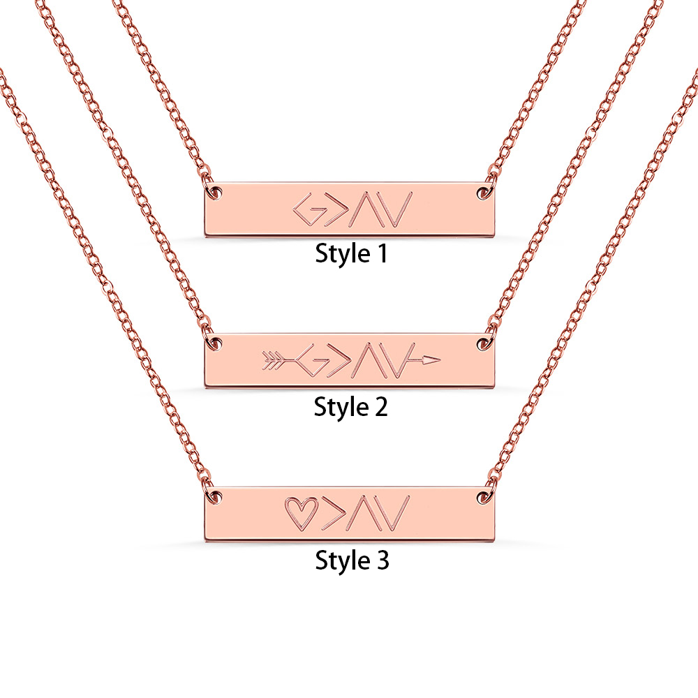 Si crees en Dios, entonces debes haber escuchado el dicho "Dios es mayor que los altibajos", nuestro collar transfiere esta oración en una serie de símbolos, ¡grabando tu creencia en Dios en el collar, cerca de tu corazón! ¡Dios está en nuestro corazón y nos otorga fuerza cuando nos enfrentamos a tiempos difíciles! Y tenemos grabado gratuito en la parte posterior de la barra, puede grabar su creencia o el lema que ama, hacer que el collar de la barra sea único. ¡Es el collar perfecto para aquellos que creen en Dios!