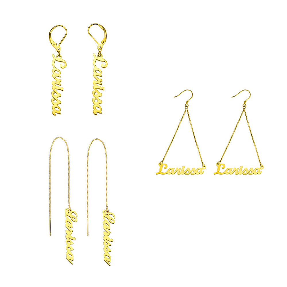 Longitud total: Pendientes colgantes con nombre - 4 CM (1,57 PULGADAS); Pendientes colgantes con nombre - 5 CM (1,97 PULGADAS); Pendientes con nombre de enhebrador - 13 CM (5 PULGADAS)