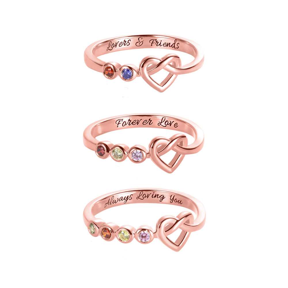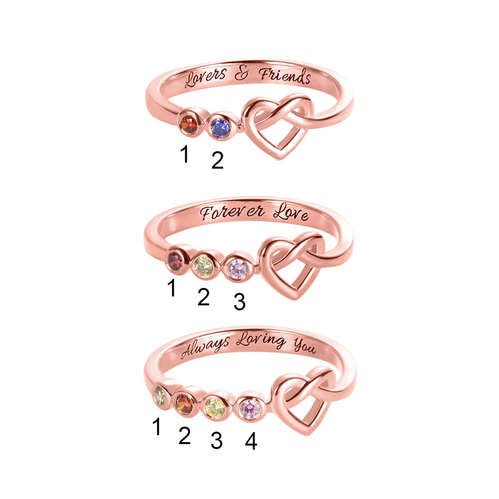 Hay muchas formas de expresar el amor, pero el anillo es siempre el más único. Este anillo combina dos elementos de piedra de nacimiento y amor, y conecta el corazón de uno con otro para siempre. ¡Lo más maravilloso es que puedes elegir 2-4 piedras de nacimiento, las pondremos del lado del amor y nos conectaremos con las personas más especiales e importantes de la vida de una manera poderosa!
