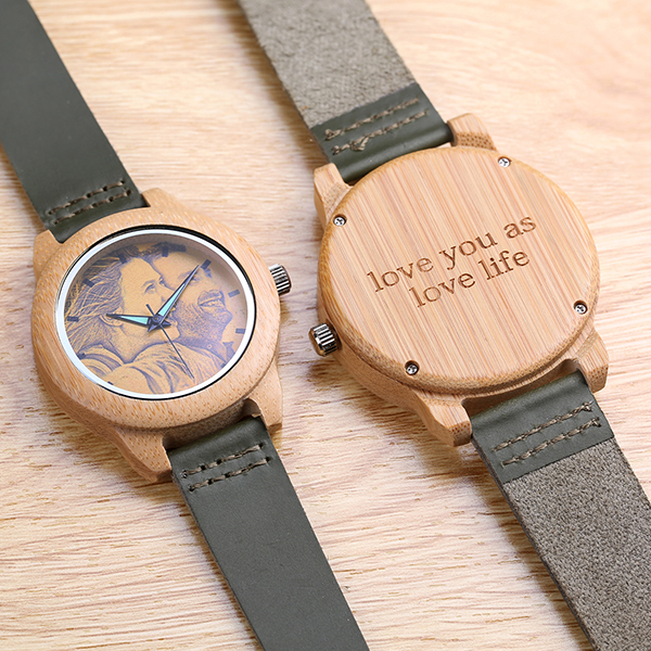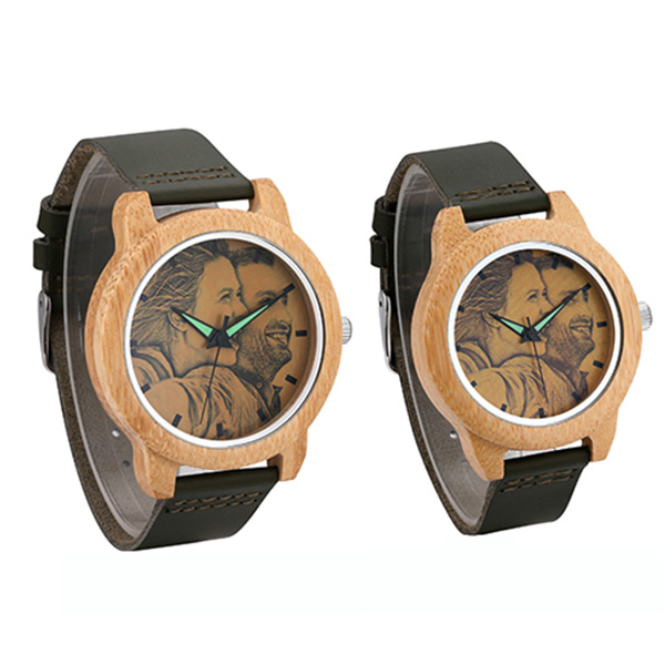 Reloj de fotos de madera de bamb¨² grabado para hombres / mujere