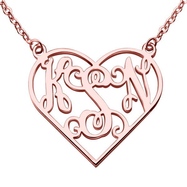 Colgante con monograma de 3 iniciales y corazón en oro rosa - Si busca un regalo para impresionar a su ser querido. Este exclusivo collar con monograma y corazón es un regalo perfecto y con estilo para un amigo o para usted mismo. Este tipo de collar con monograma y el símbolo del amor es un magnífico añadido para cualquier colección de joyas.