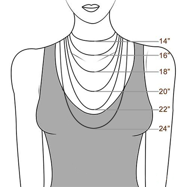 2. La longitud de la cadena que se menciona en nuestra página web no incluye el colgante. Haga clic aquí para consultar la guía de longitudes de la cadena.